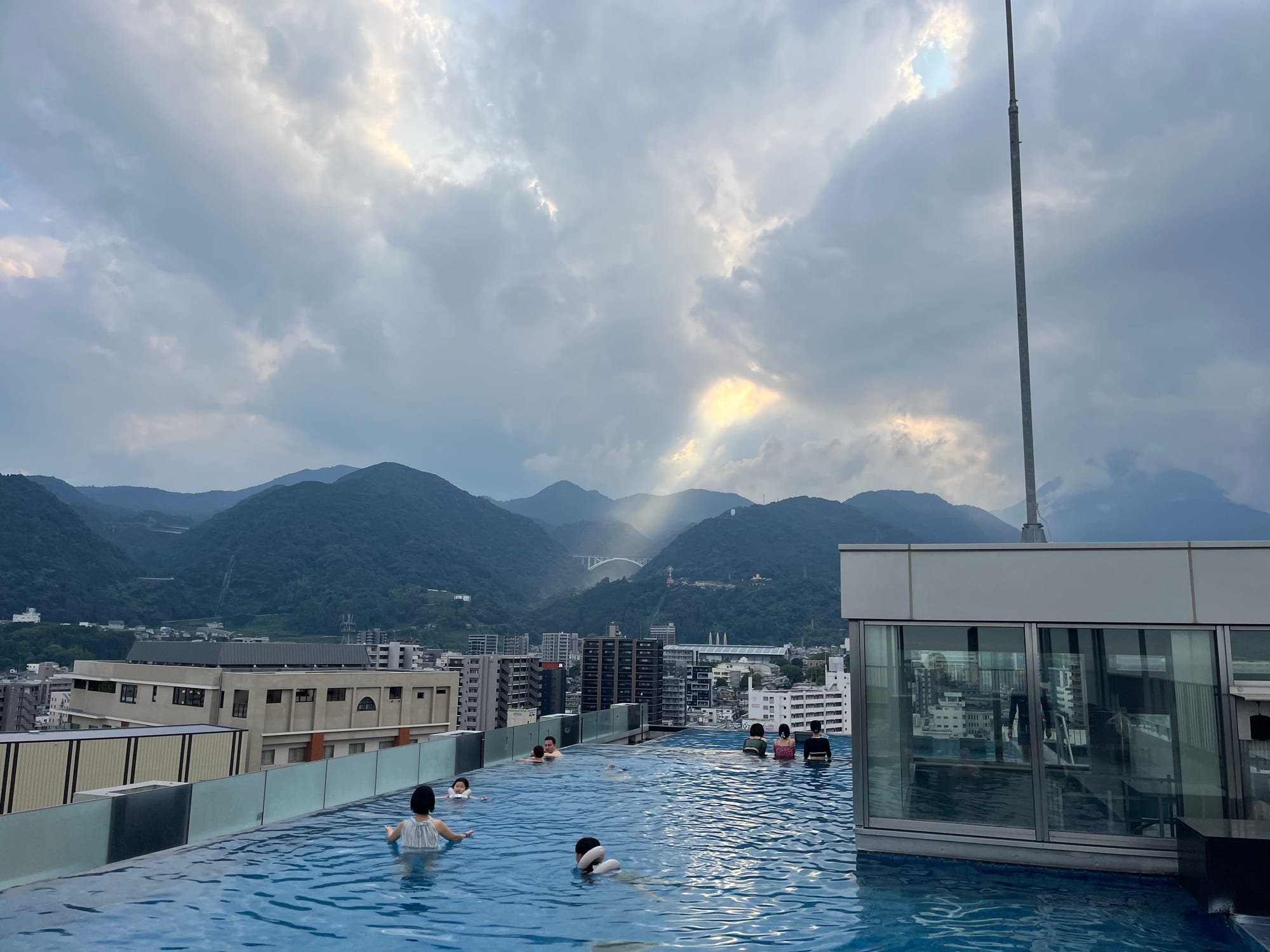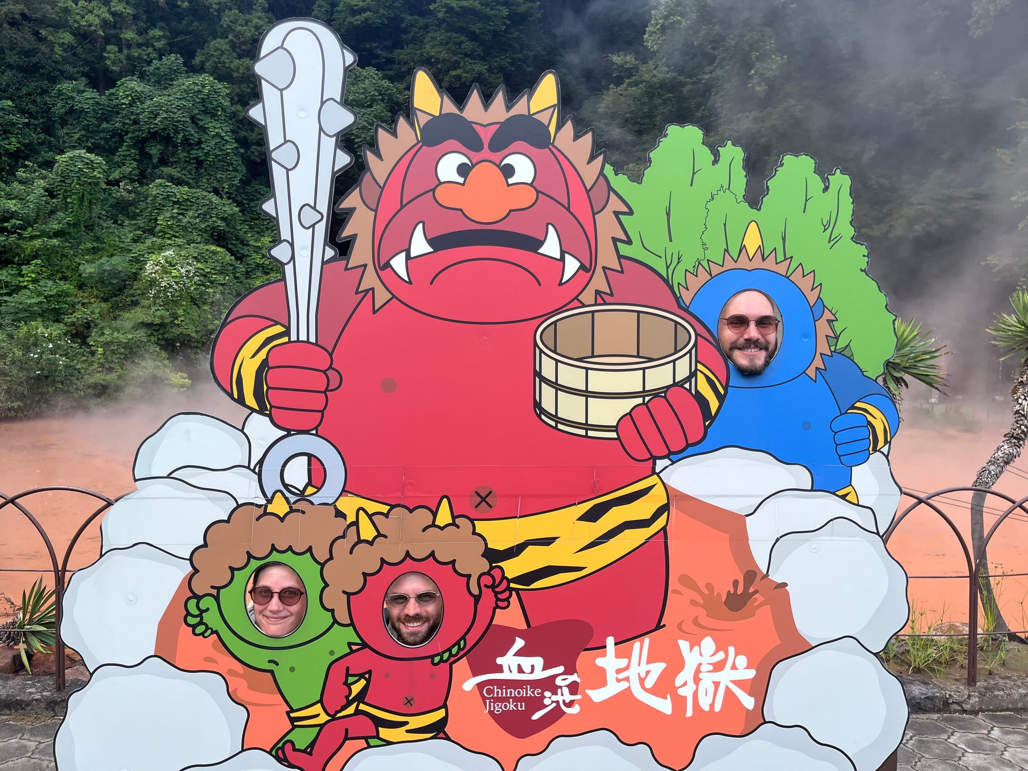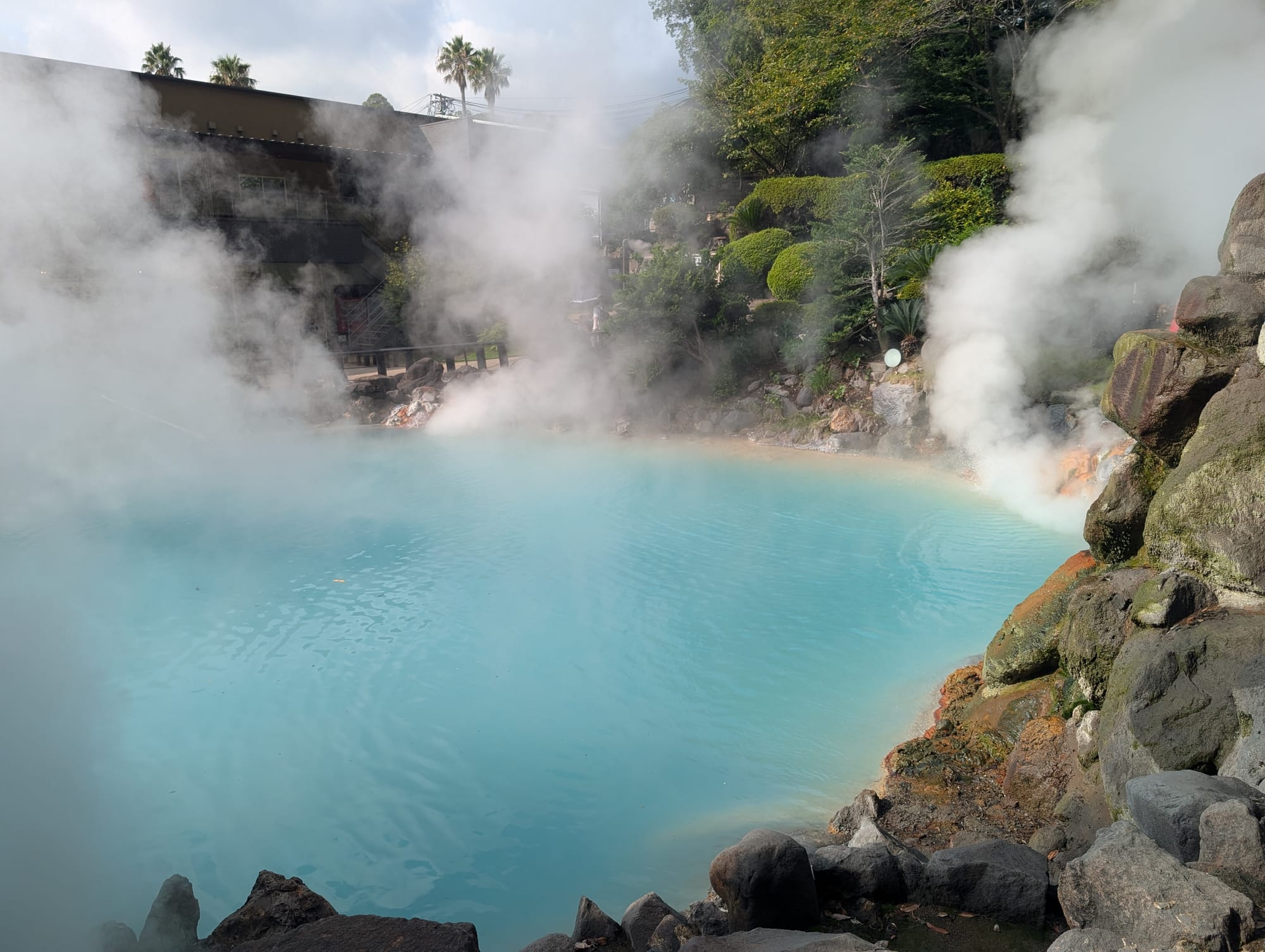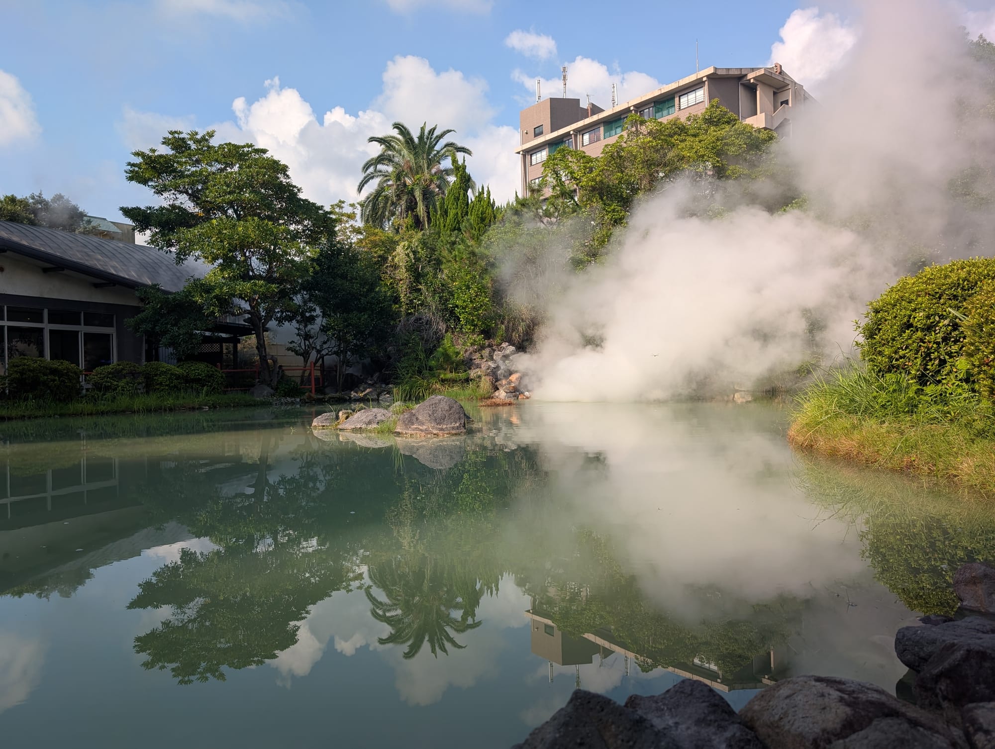 In Kyushu ging es zuerst südlich bis nach Beppu, einer Onsenstadt im Osten. Da es in der ganzen Stadt natürliche Quellen gibt, konnte man in der ganzen Stadt verteilt die Quellen dampfen sehen. Wir haben uns dort mal wieder einen richtigen Ruhetag gegönnt, wo das Hotel nur verlassen wurde, wenn sich der Hunger meldete. Ansonsten waren wir mit Onsen und Rooftop-Pool mit super Aussicht top ausgerüstet. In der Stadt gab es auch einige Quellen, welche besichtigt werden konnten.
