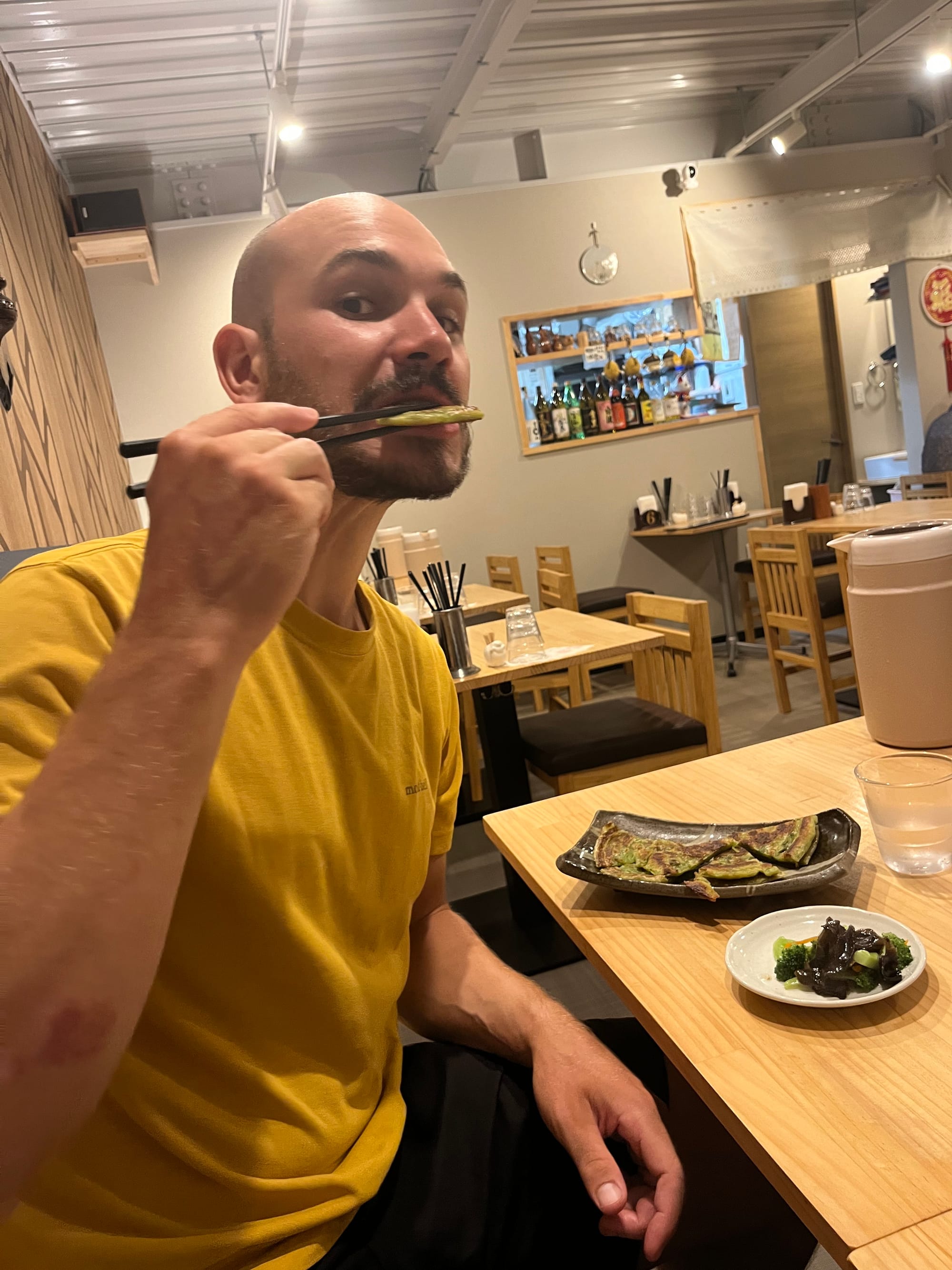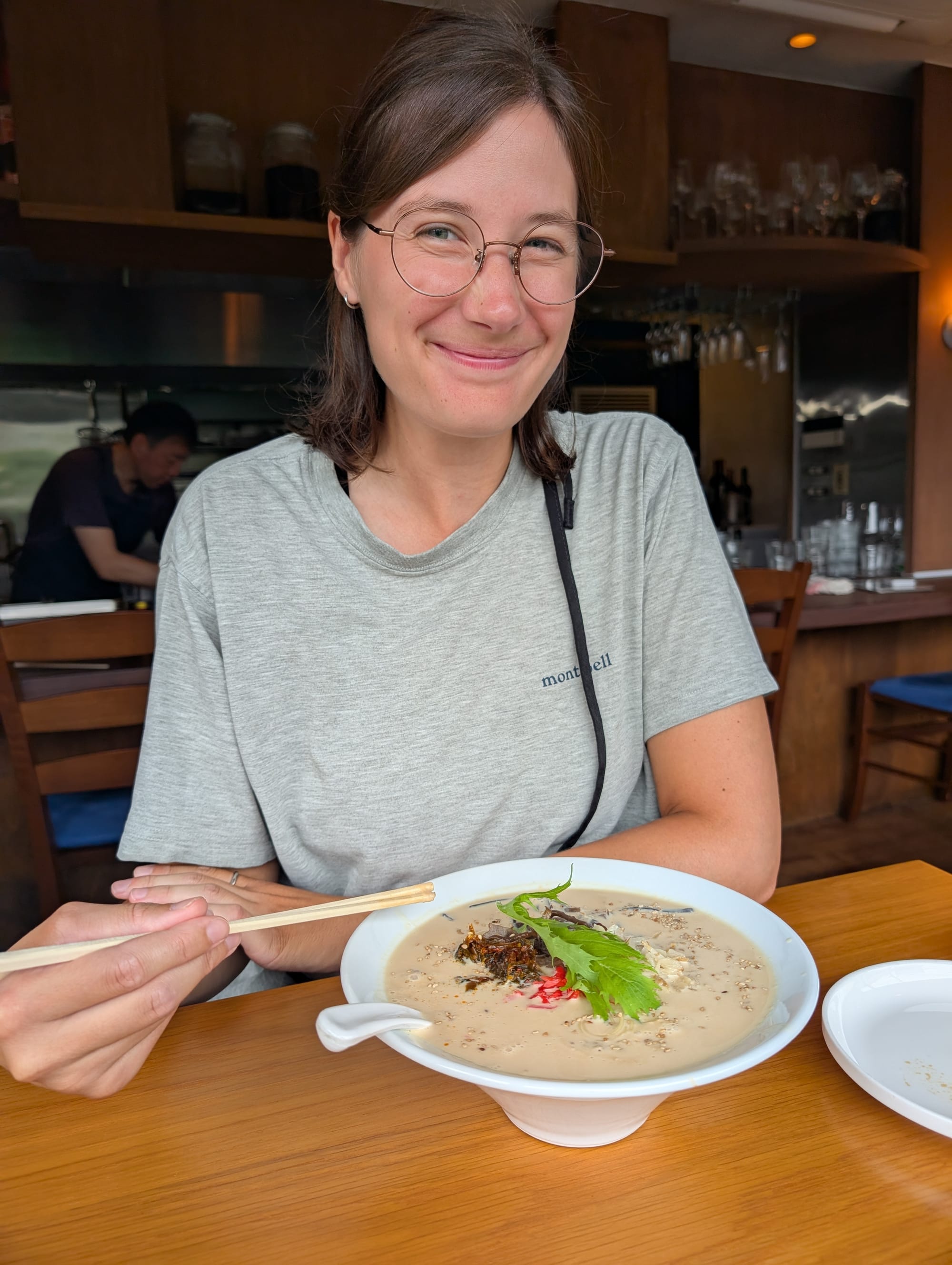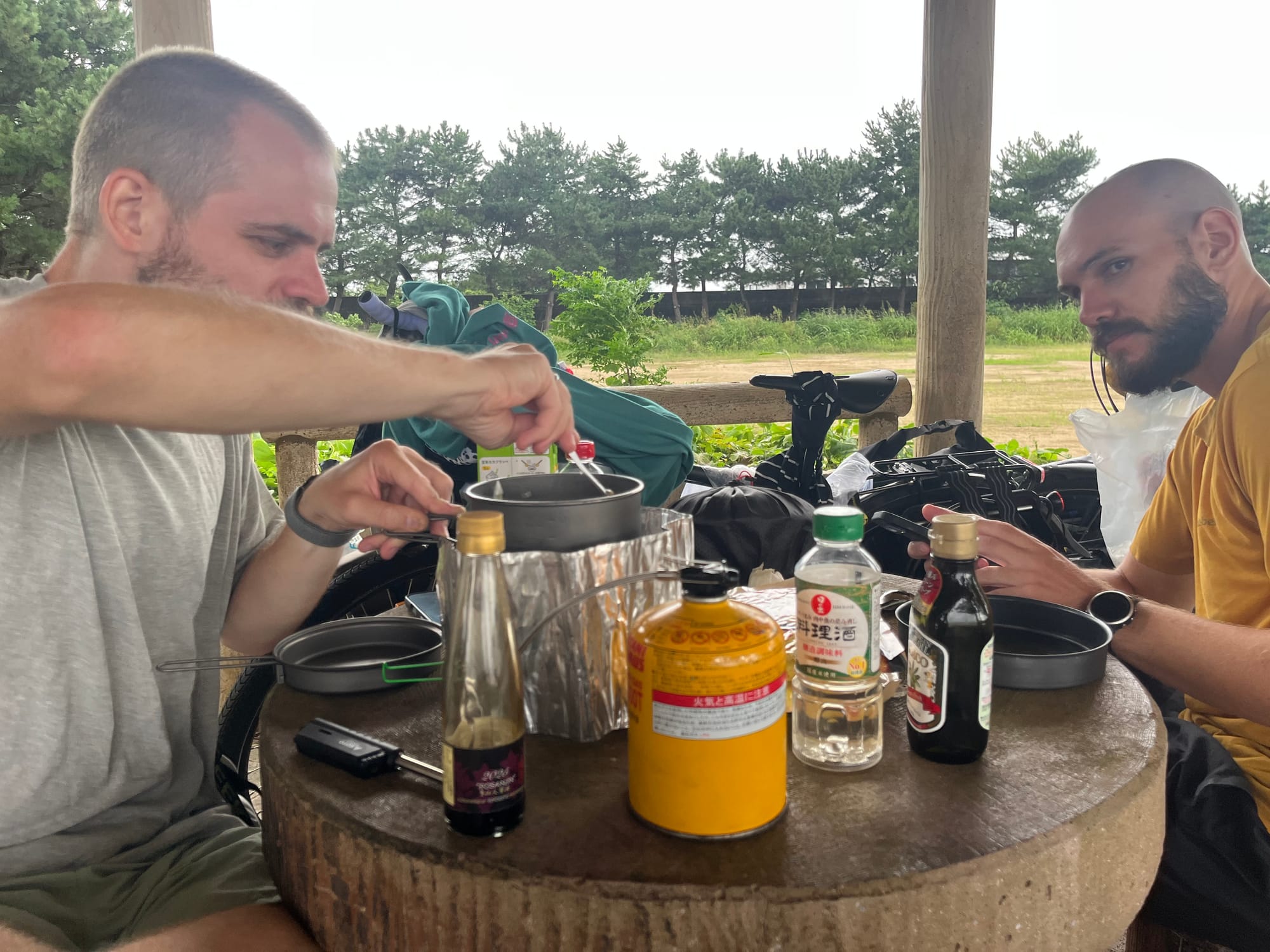 Die Strecke von Nagasaki bis nach Fukuoka war echt schön - wenig Verkehr, schöne Aussicht und wenige Höhenmeter. Wir kamen also relativ entspannt in Fukuoka an und konnten gemütlich noch einige letzte Tage in Japan geniessen. Wir konnten noch mal richtig gut essen (ein chinesisches Restaurant war so gut, dass wir drei mal dort waren), und wir trafen einen kanadischen Velofahrer, welchen wir in Tokyo kennenlerntern. Da er solo unterwegs war, merkte man richtig, dass er froh war, mal wieder mit einigen Leuten richtig reden zu können. Da bin ich schon froh, dass wir zu dritt unterwegs sind und es uns so kaum langweilig wird.