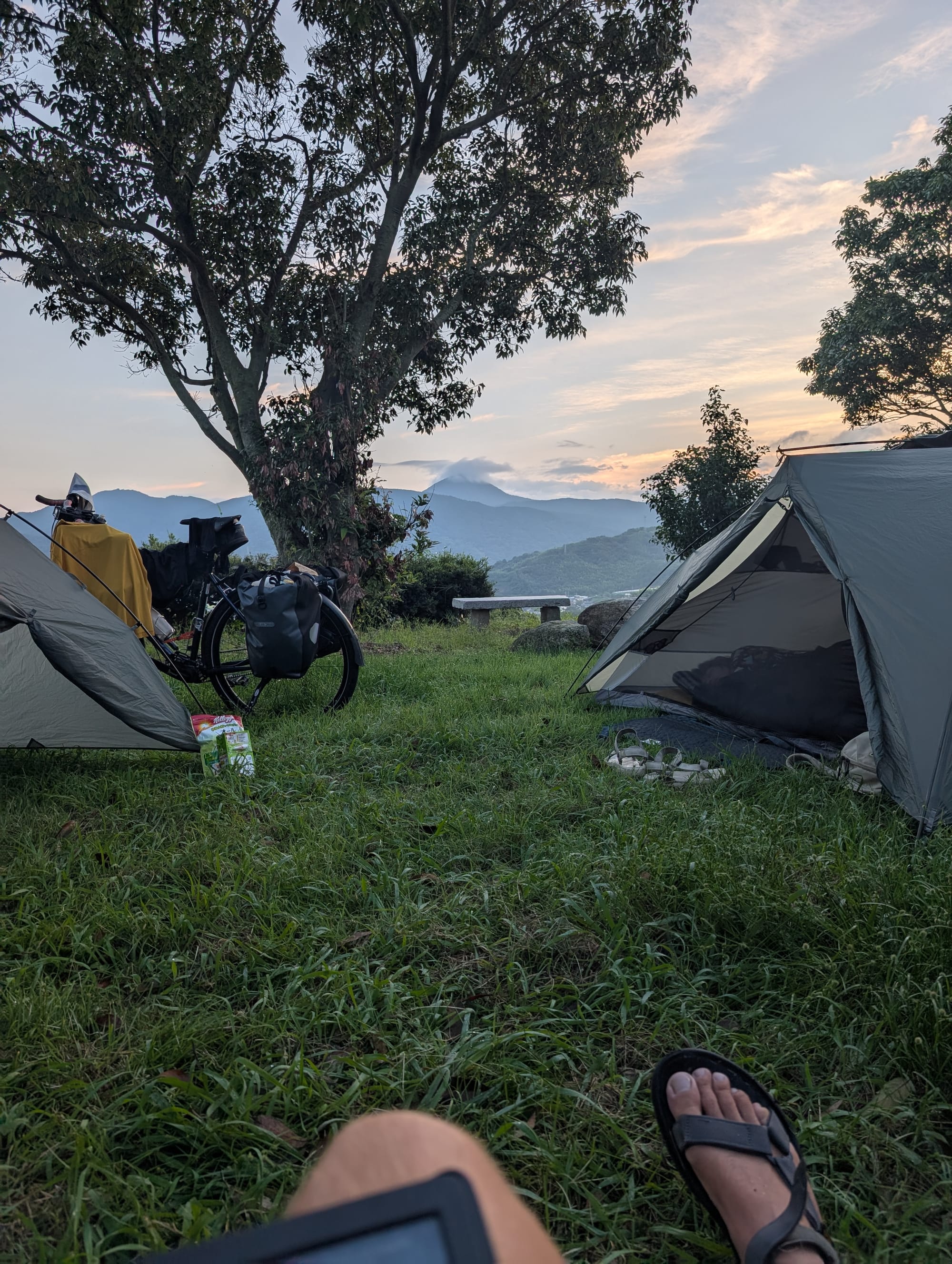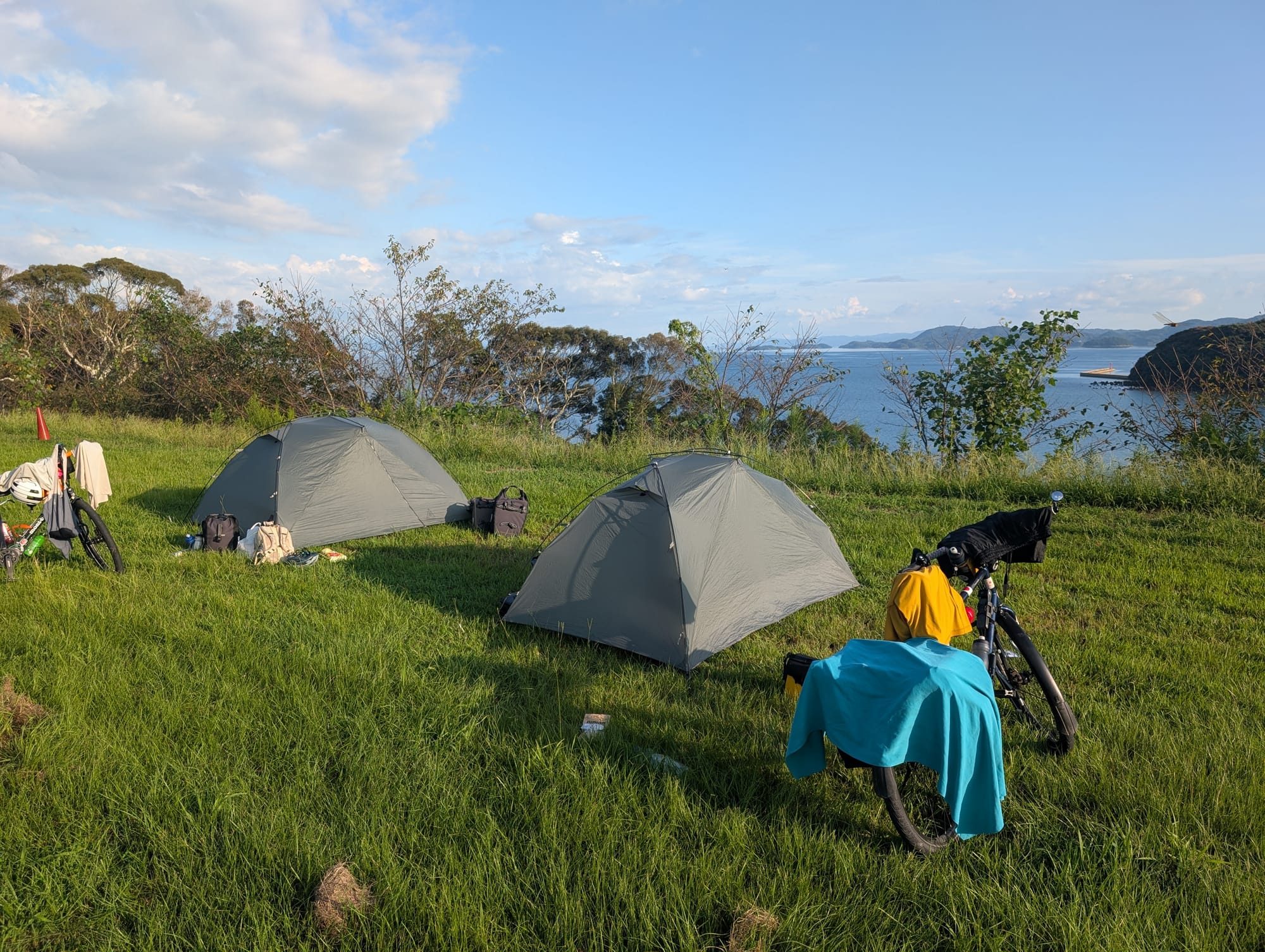 Es ging weiter Richtung Westen, nun bergab, an einen sehr windigen Campingplatz direkt am Meer. Das Zelt hat den Härtetest aber gut überstanden. Mit einer kurzen Fähre konnten wir unseren Weg nach Nagasaki, unserem nächsten Ziel, deutlich verkürzen. Die Stadt ist nicht besonders gross, aber sie hat uns ziemlich gut gefallen. Da japanische Städte allgemein nicht wirklich eine "Altstadt" haben, wie wir dies in Europa kennen, konnte man nicht merken, dass Nagasaki vor 80 Jahren komplett zerstört wurde. Andere Städte fühlen sich ebenso modern an. Auch hier durfte ein Besuch im Atombombenmuseum natürlich nicht fehlen.