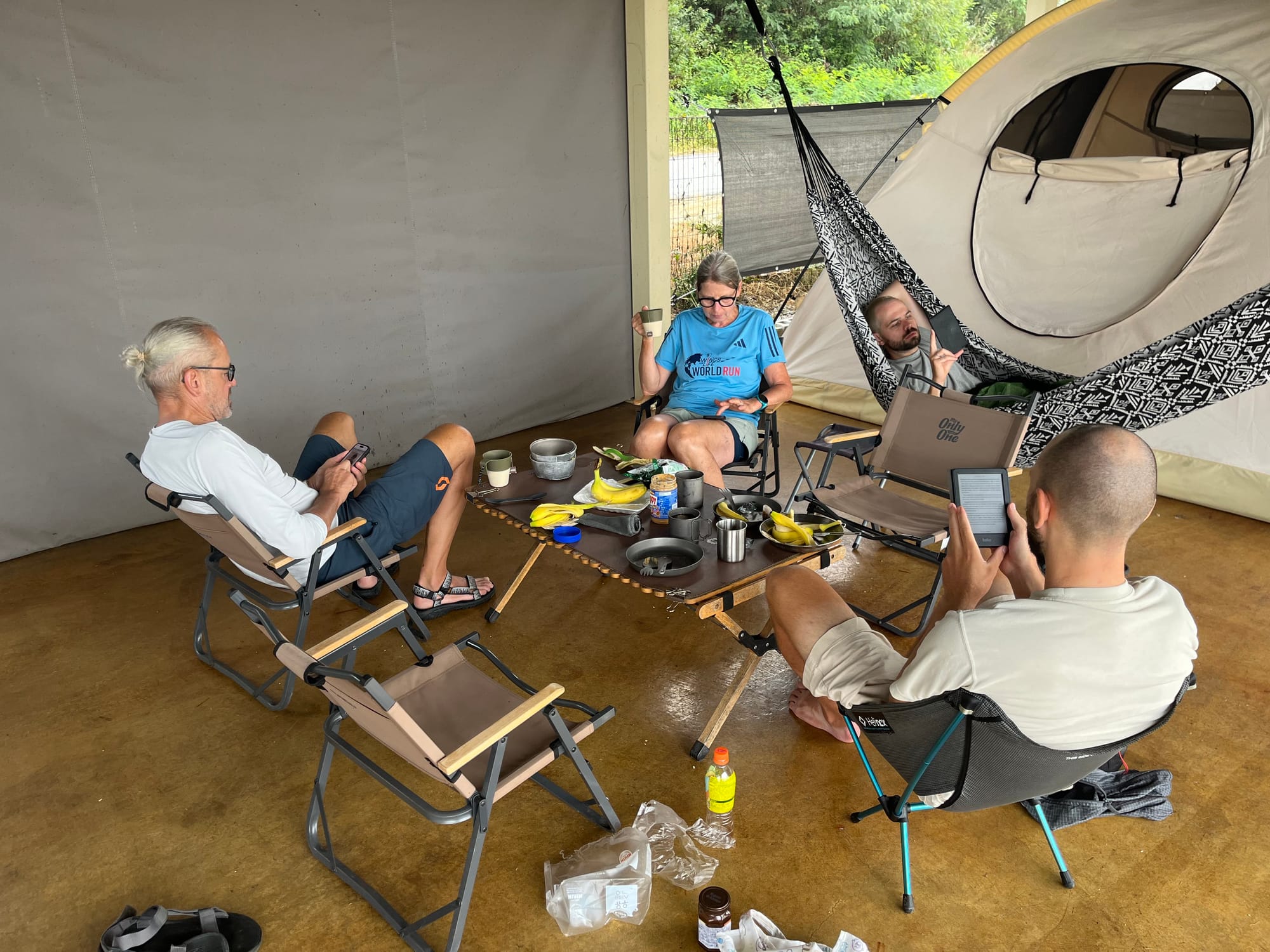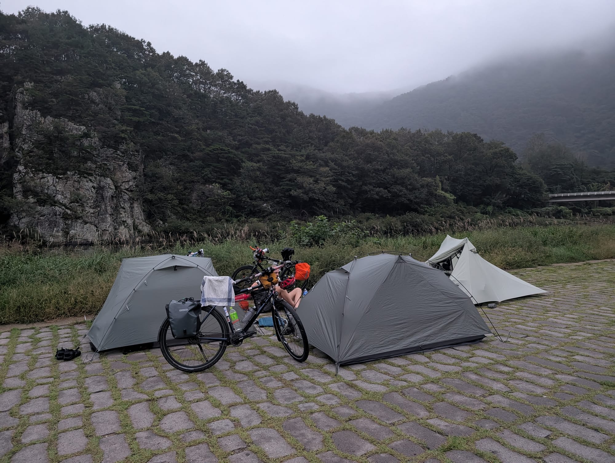 Velo zu fahren mit guter Infrastruktur, angenehmen Temparaturen und wenigen Höhenmetern mal einge gemütliche Abwechslung, dazu war auch keine Routenplanung nötig, da wir einfach dem Fluss folgten. Wir sind jedoch die meisten Tage weiter gefahren, als wir geplant hatten. Fast jeden Tag kam es vor, dass unser geplanter Campingplatz nicht existierte, voll war oder auch einfach eine Onlinereservation nötig ist, welche wir ohne koreanische Telefonnummer nicht buchen können. Da war die Dame an der Reception leider wenig flexibel. Irgendwie haben wir aber immer was gefunden, sei es ein gemütliches Glamping-Zelt oder auch mal ein Hotel an den regnerischen Tagen.