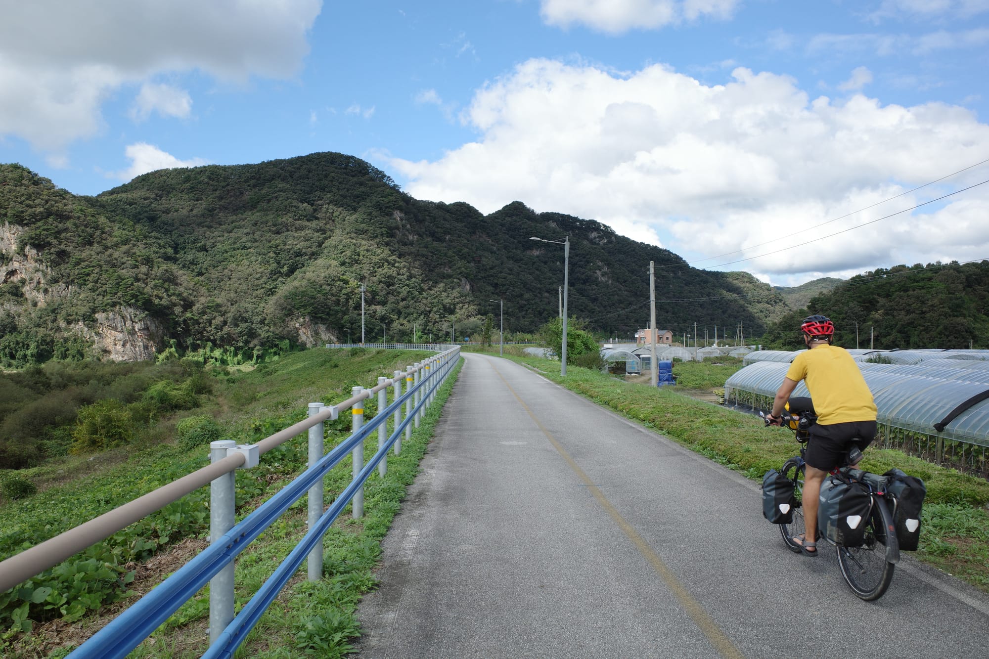 Zuerst dachte ich, dass Südkorea und Japan ähnlich sind, doch es dauerte nicht lange, um zu merken, dass dem nicht so ist. In Südkorea wurde man von den entgegenfahrenden Velofahreren teilweise fast angeschrien, so motiviert waren deren anspornenden Rufe. Der Veloweg ist beliebt bei den Koreanern, und wir sind während einer grossen koreanischen Feiertagszeit unterwegs. Insbesondere in der Nähe von Seoul wird es fast schon eng auf dem Veloweg. Das Land wirkt allgemein etwas chaotischer als Japan, wo alles sehr geregelt ist. Zwischendurch treffen wir aber immer wieder mitten im Nichts auf sehr stylische Cafés, die scheinen den Koreanern ziemlich wichtig zu sein.