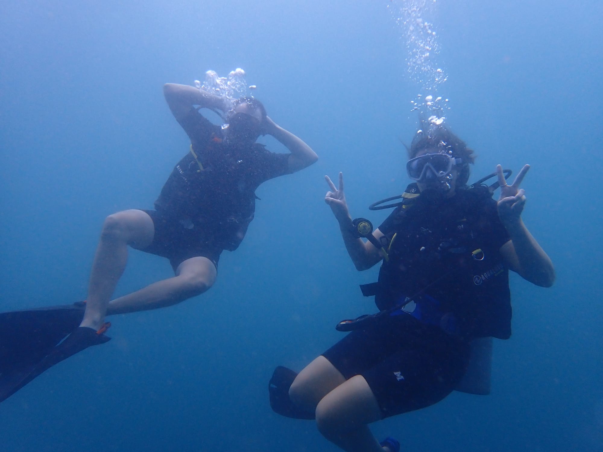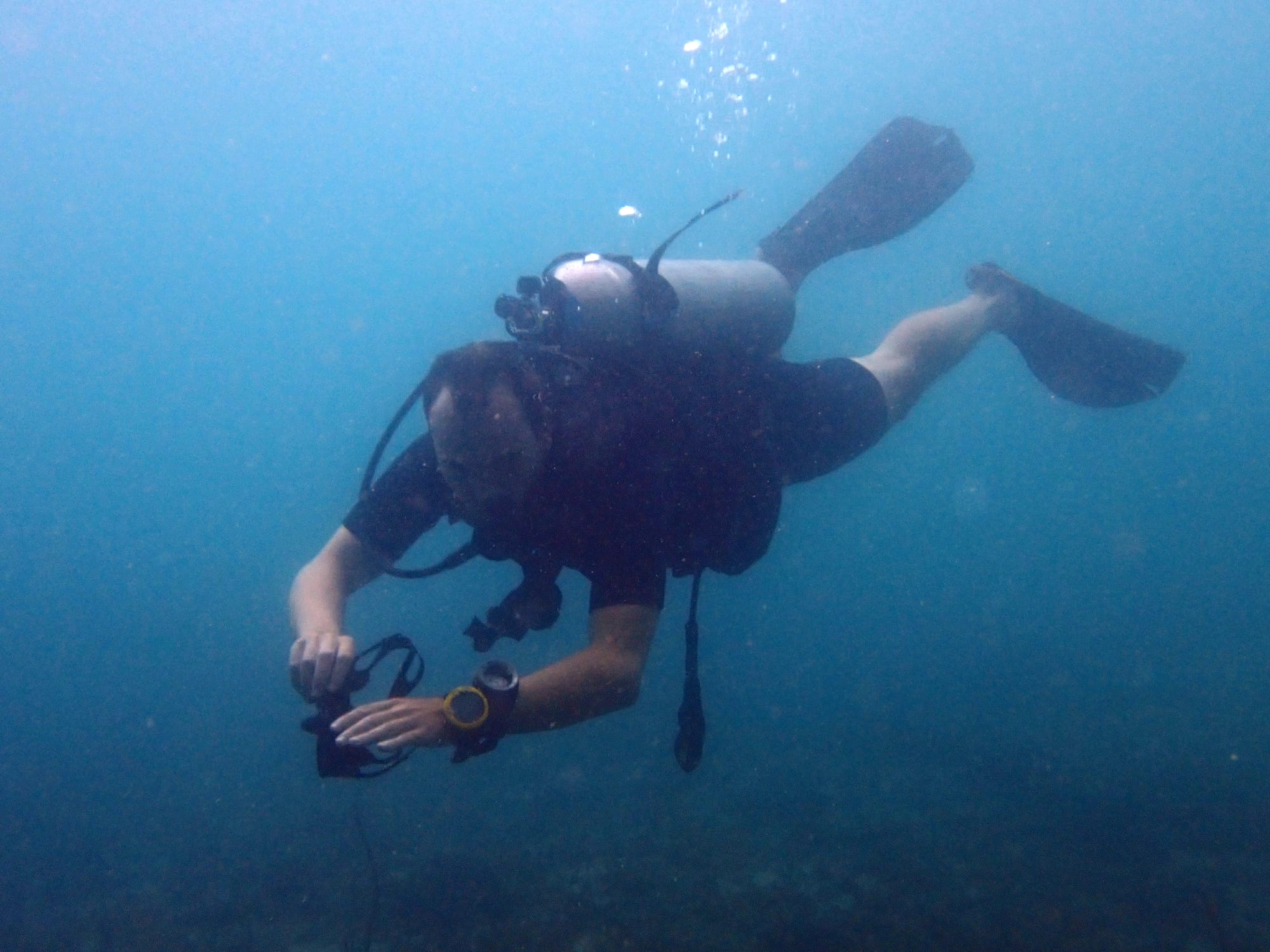 Sandro hatte bereits vorher einiges an Taucherfahrung, er machte dann einen Fotokurs und fotografierte uns am ersten Tag. Am zweiten Tag hatte unser Instruktor eine Kamera dabei, so konnten wir die Unterwasserwelt und unsere Bemühungen unter Wasser sogar fotographisch festhalten.
