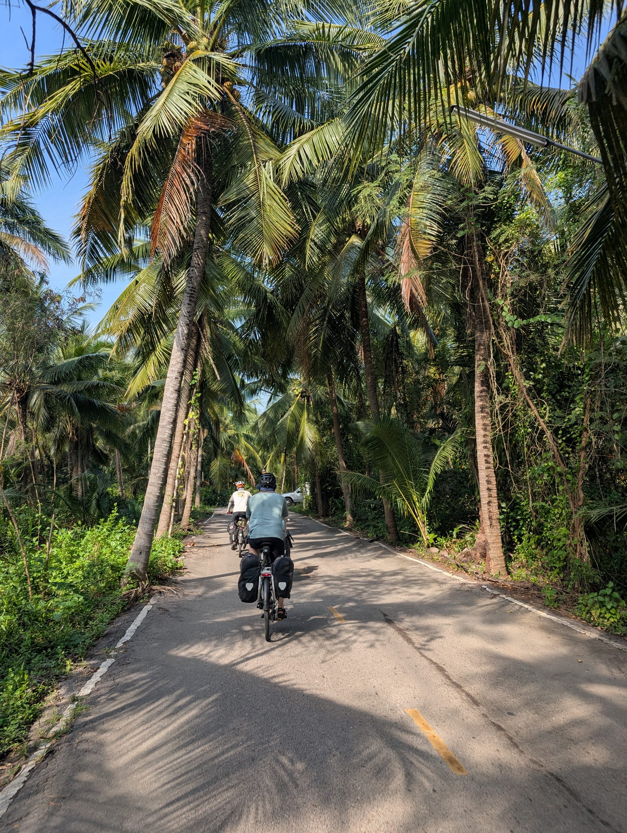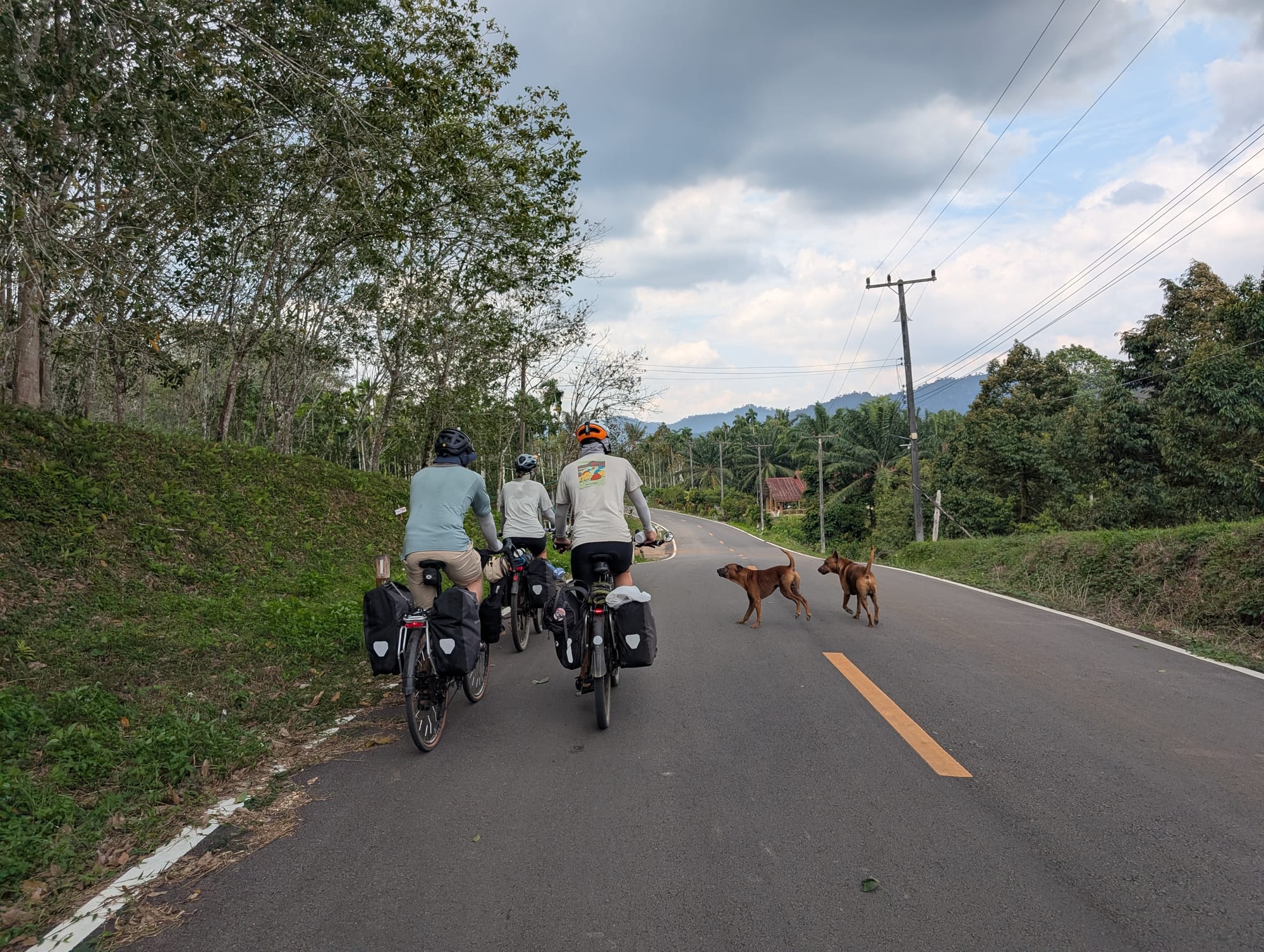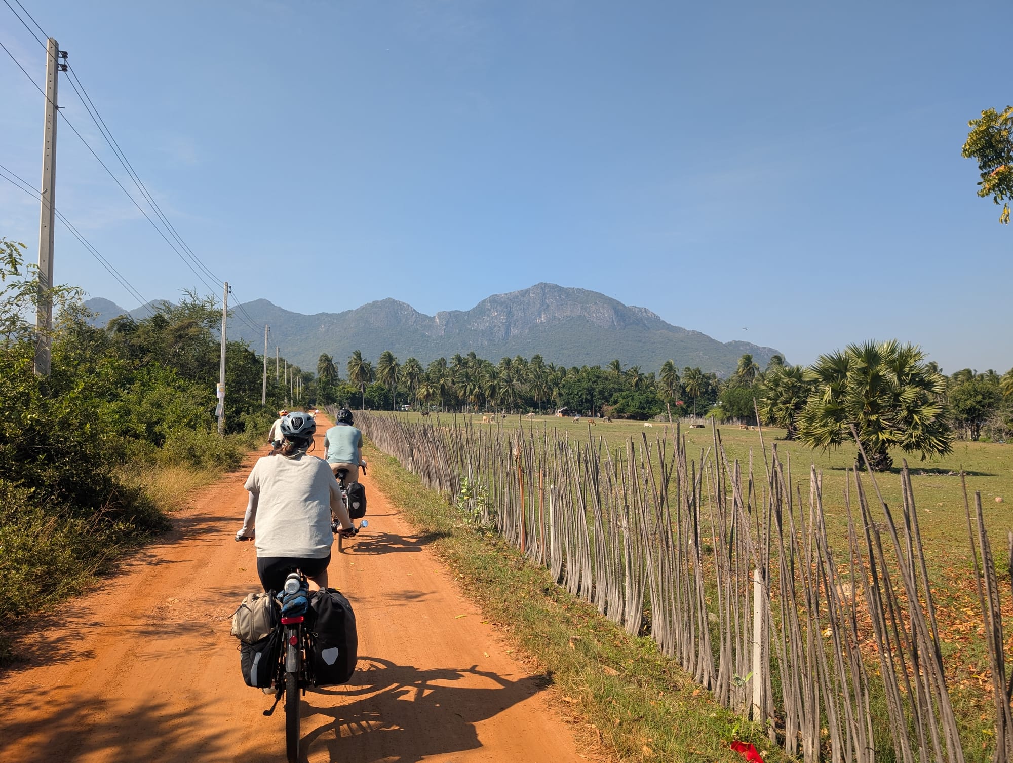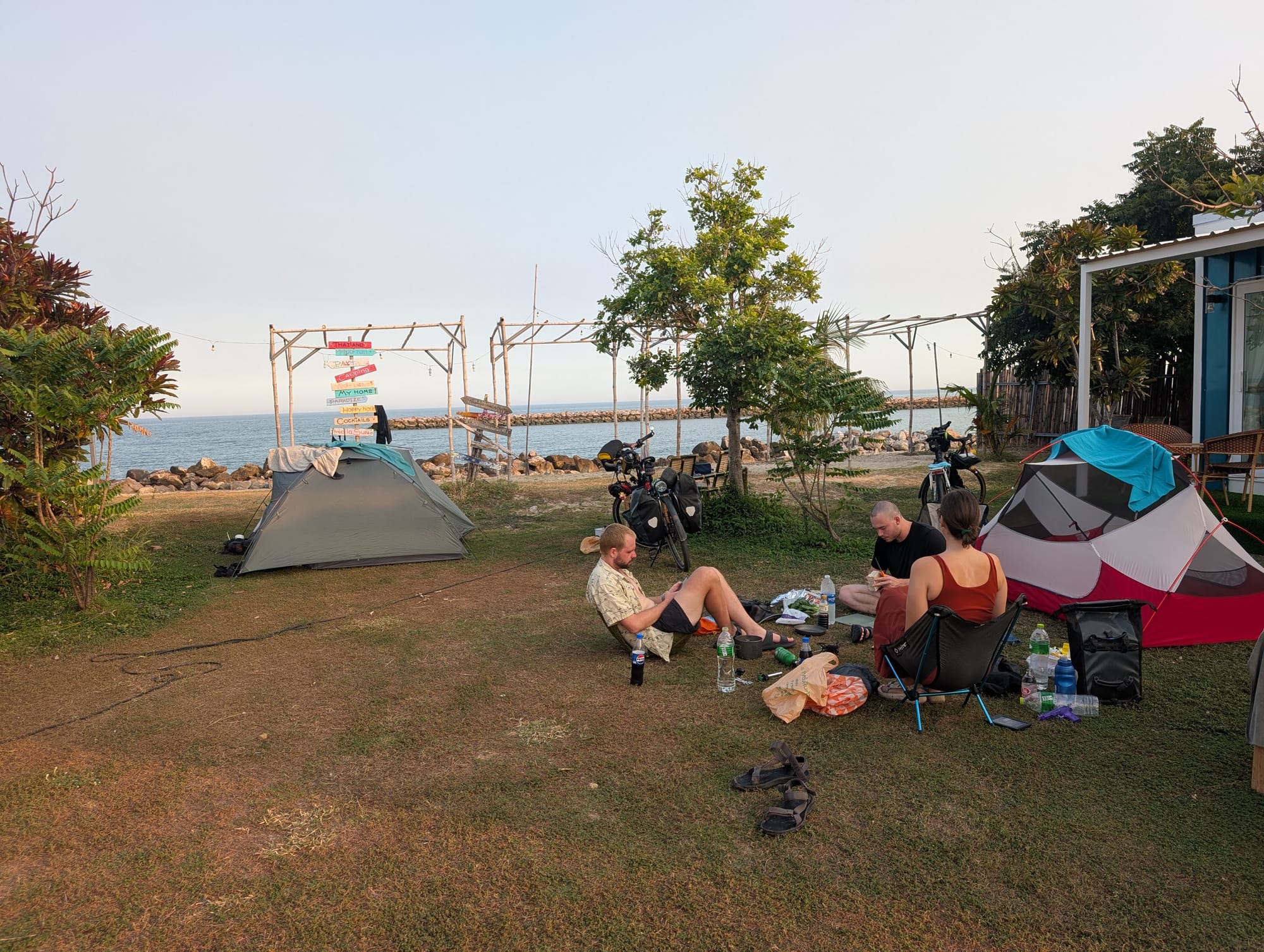 Es ging weiter der Küste entlang und wir kamen in den Genuss der thailändischen Strände. So konnten wir am Strand mittagessen, direkt mit den Velokleidern ins klare Wasser für eine Abkühlung und dann nochmals einige Kilometer weiter fahren.